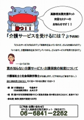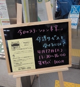 4月12日にセミナー「介護サービスを受けるには」(予約制)を開催しました。案外しらない介護サービス・介護保険の制度について、理解していただけたかとおもいます。多数のご出席いただきありがとうございました。